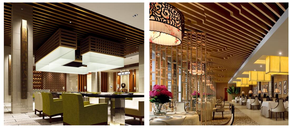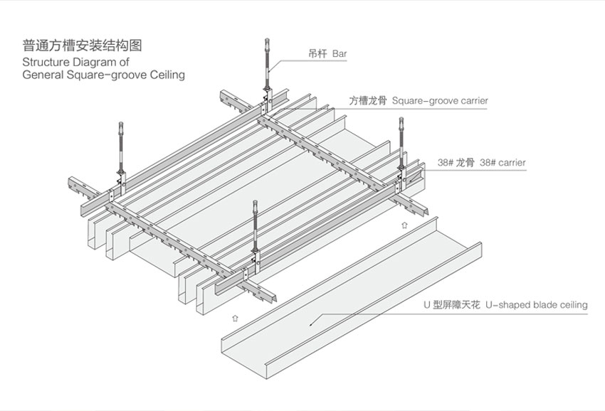 U-shaped square-pass barrier celing has a transparent structure, excellent exhaust effect, and is installed by one-way slats to form a one-way screen-level vision. The shape is beautiful, the lines are bright and elegant, simple and generous. If the height is properly selected, its space The visual angle can produce the effect of the curtain making the design change thousands of times, the entire building space is wide and transparent, and the fashion sense of the ceiling industry is more