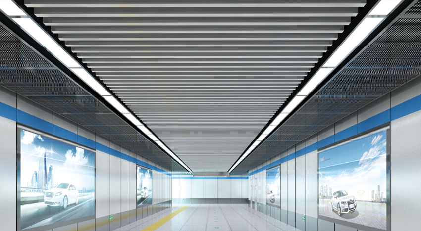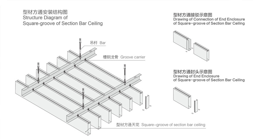 型材方通通過連續(xù)滾壓或冷彎成型,安裝結(jié)構(gòu)為專用龍骨卡扣式結(jié)構(gòu),安裝方法類似普通的條形扣板,簡(jiǎn)單方便,適用于室內(nèi)裝飾。產(chǎn)品有著開透、吸音和裝飾等功能,并且具備現(xiàn)代時(shí)尚、超前效果。通過面板高度、方向以及照明和顏色的變化,將吊頂表現(xiàn)得更加通透和富有動(dòng)感。