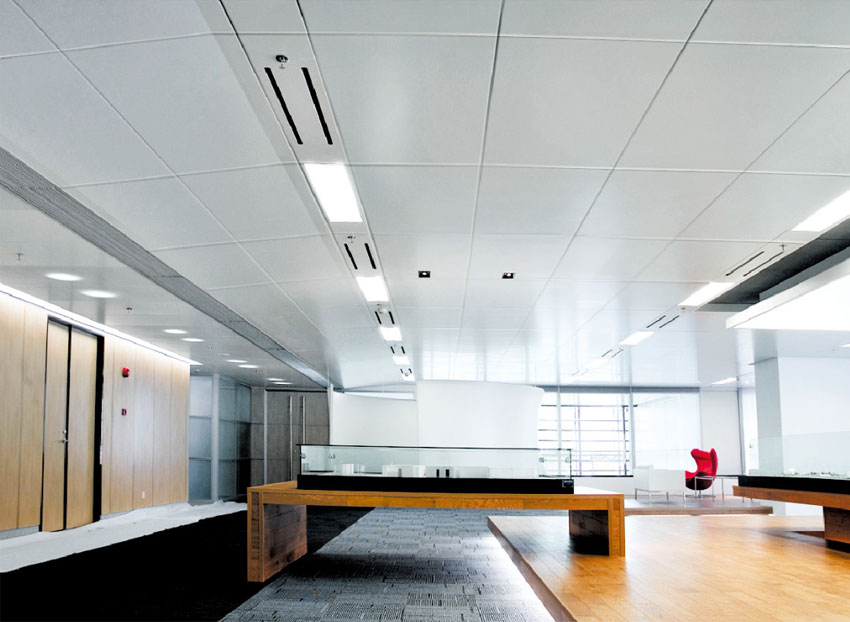 吸音功能:可選擇布孔,穿孔率在1%至25%,具有吸音功能,天花板背面貼上非助燃的吸音紙或吸音棉會達到最佳吸音效果。